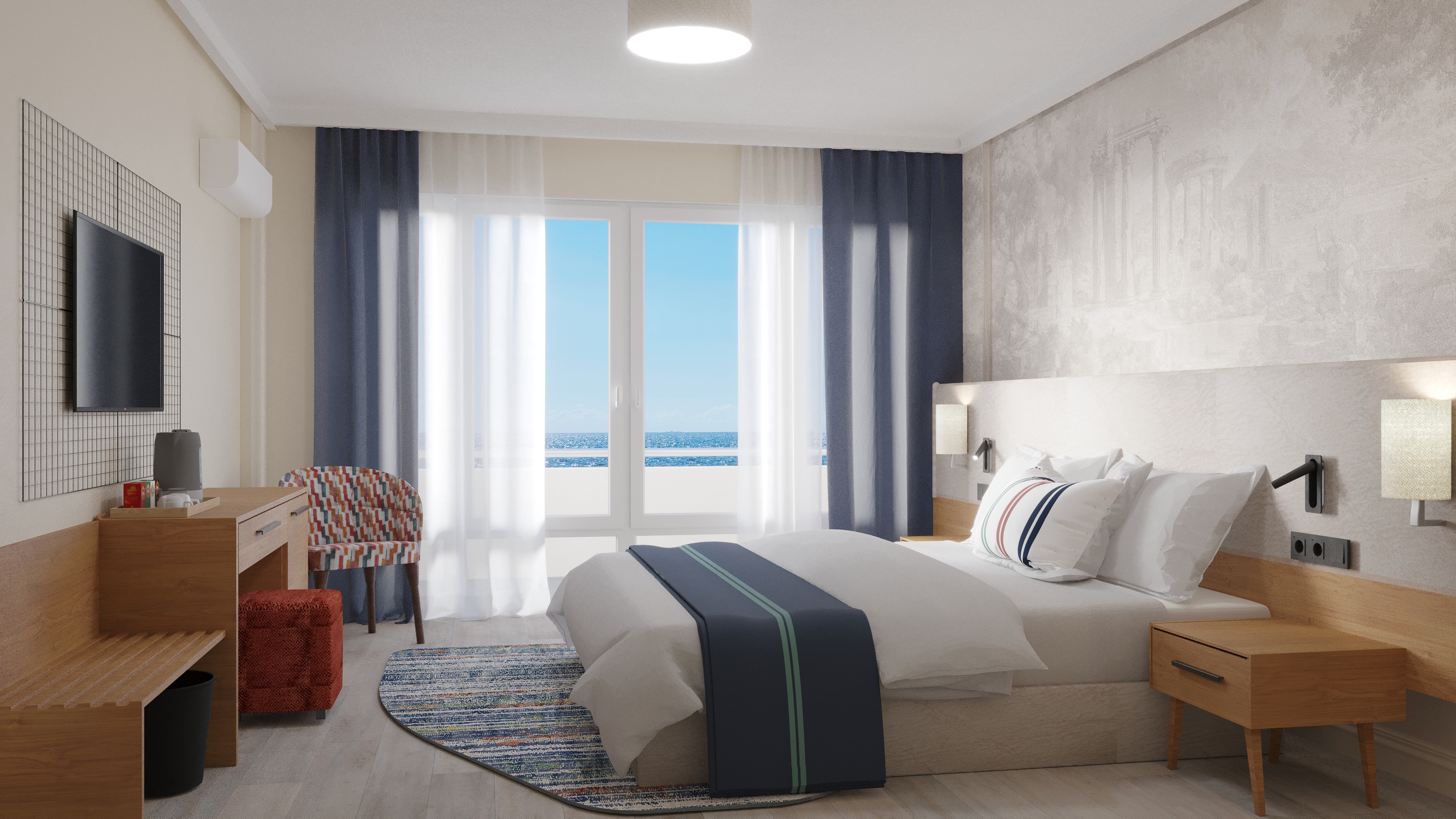 Balkon (deniz manzaralı), tuvalet, duşakabin, ücretsiz banyo buklet ürünleri, bornoz, saç kurutma makinesi, split klima sistemi, LCD televizyon ve uydu yayınları, telefon, minibar, laptop boyutuna uygun emanet kasa, 50 Mbps yüksek hızlı kablolu ve kablosuz internet, çay & kahve set-up, yastık menüsü, ütü ve ütü masası ile uluslararası standartlarda yangın güvenlik sistemleri.